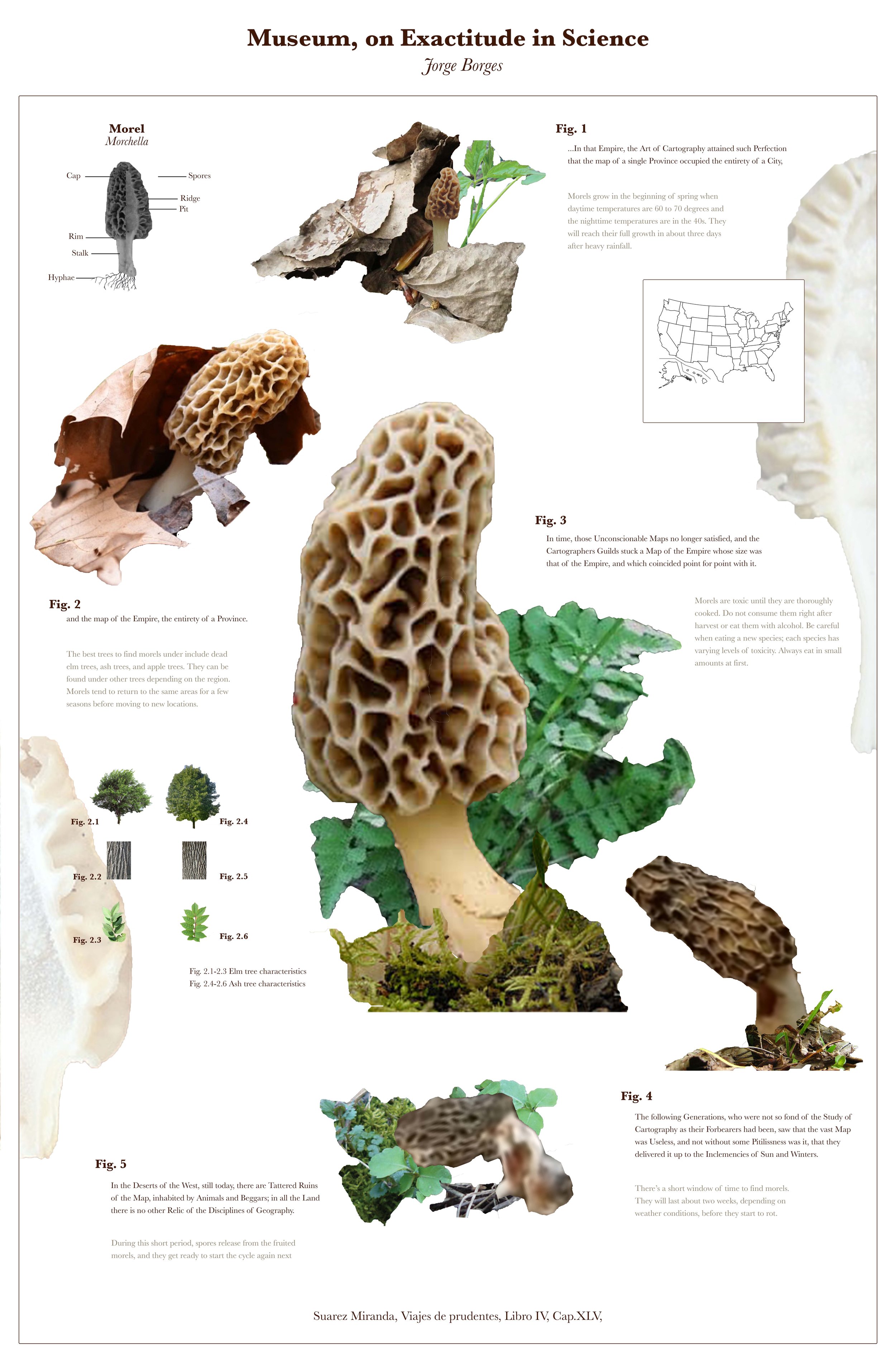 Follow the morel mushroom through its life cycle as it is told with the pairing of Jorge Borges’ text “Museum, on Exactitude in Science.” After researching the morel mushroom,